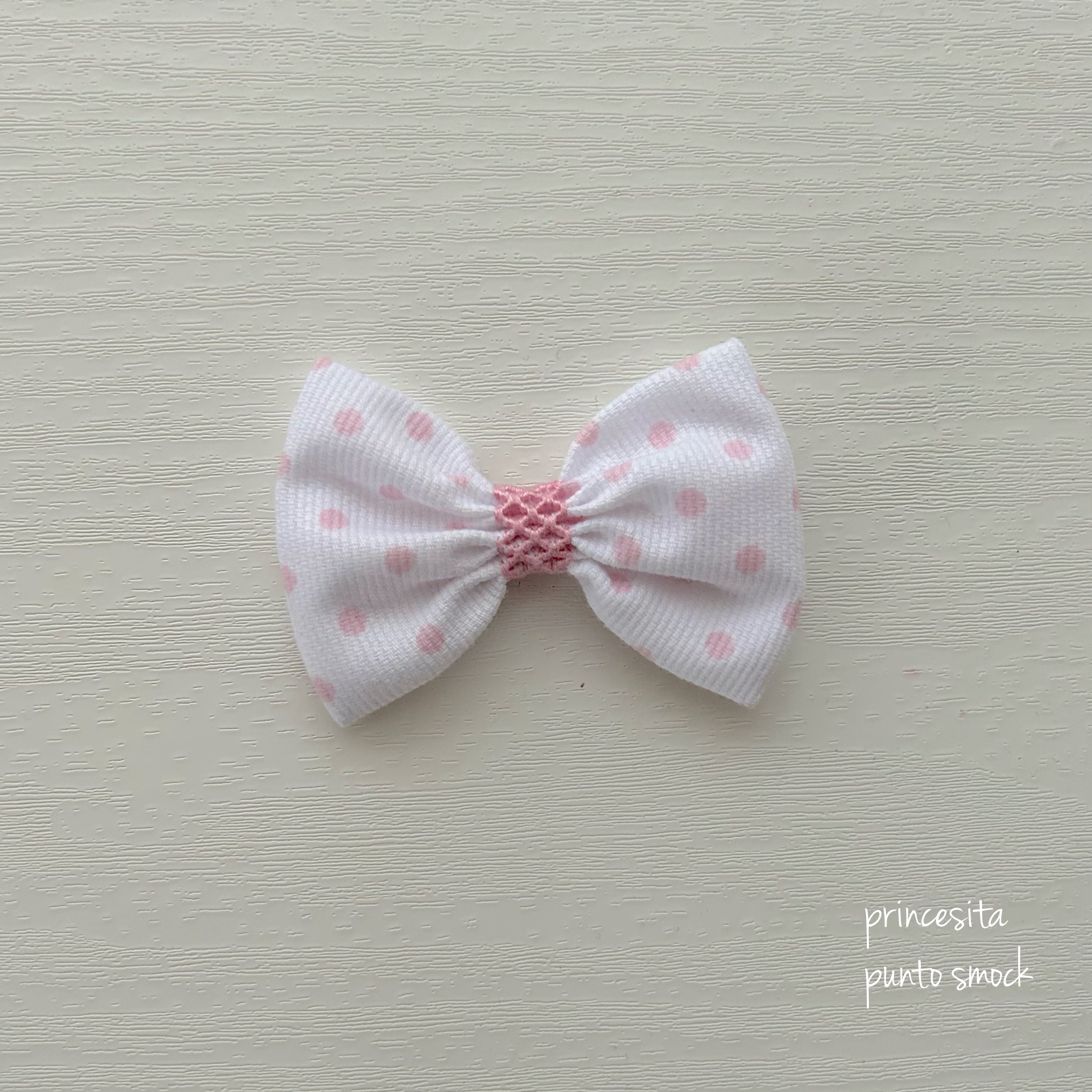 Ready to スモッキングリボン 白にピンクのドット