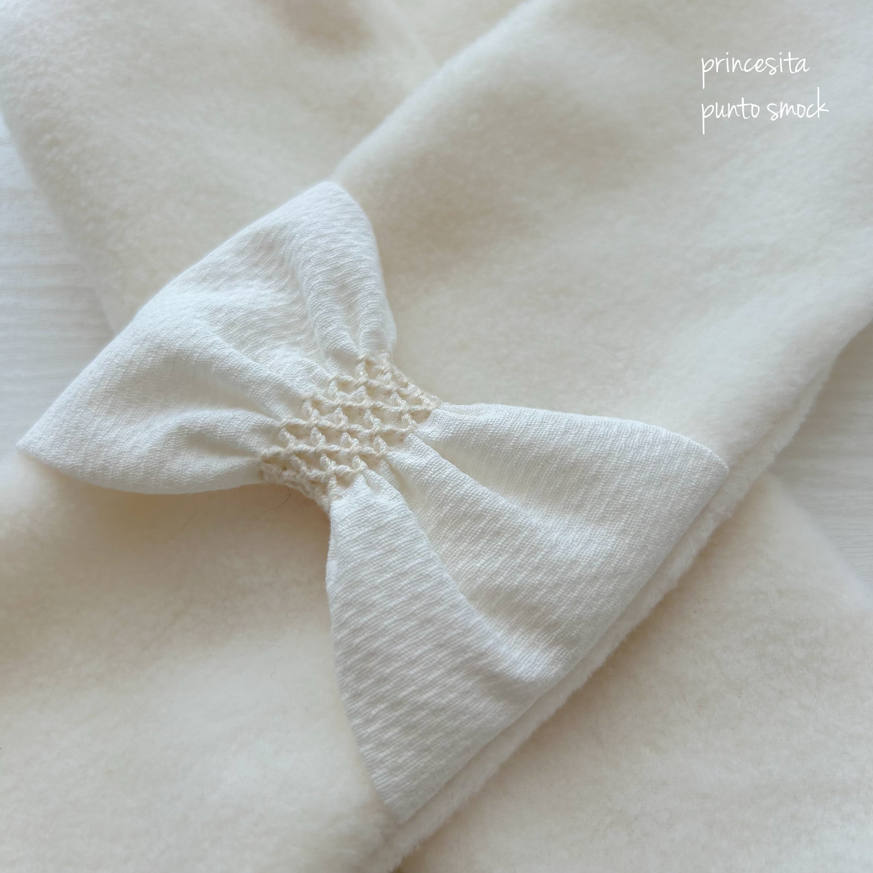 美しいひだ感が出る生地をスモッキングのリボンにしました